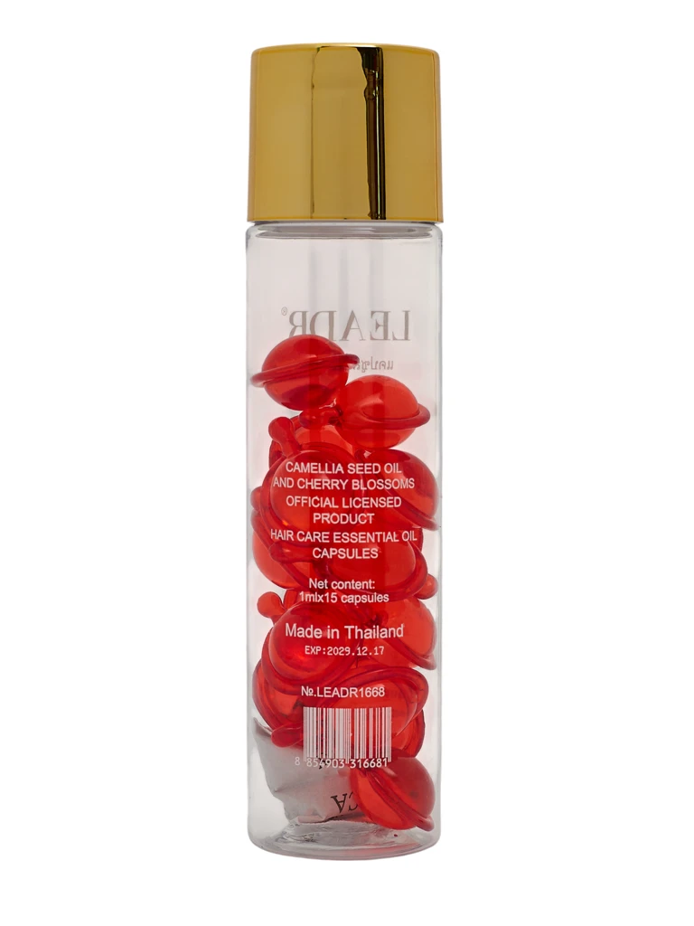 Hajolaj kapszulák kamélia- és cseresznyeolajjal. Intenzív regeneráció, fényesség és hajvédelem.