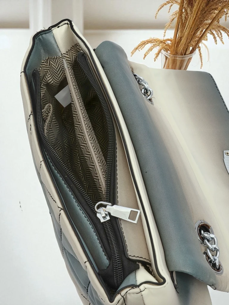 - Elegáns borítéktáska ombre hatású öko bőrből. Cipzárral és patenttal záródik. A pánt helyett fém lánc teszi stílusossá. 1 rekesz, tökéletes a legfontosabb dolgok számára egy esti programhoz vagy különleges alkalmakra.