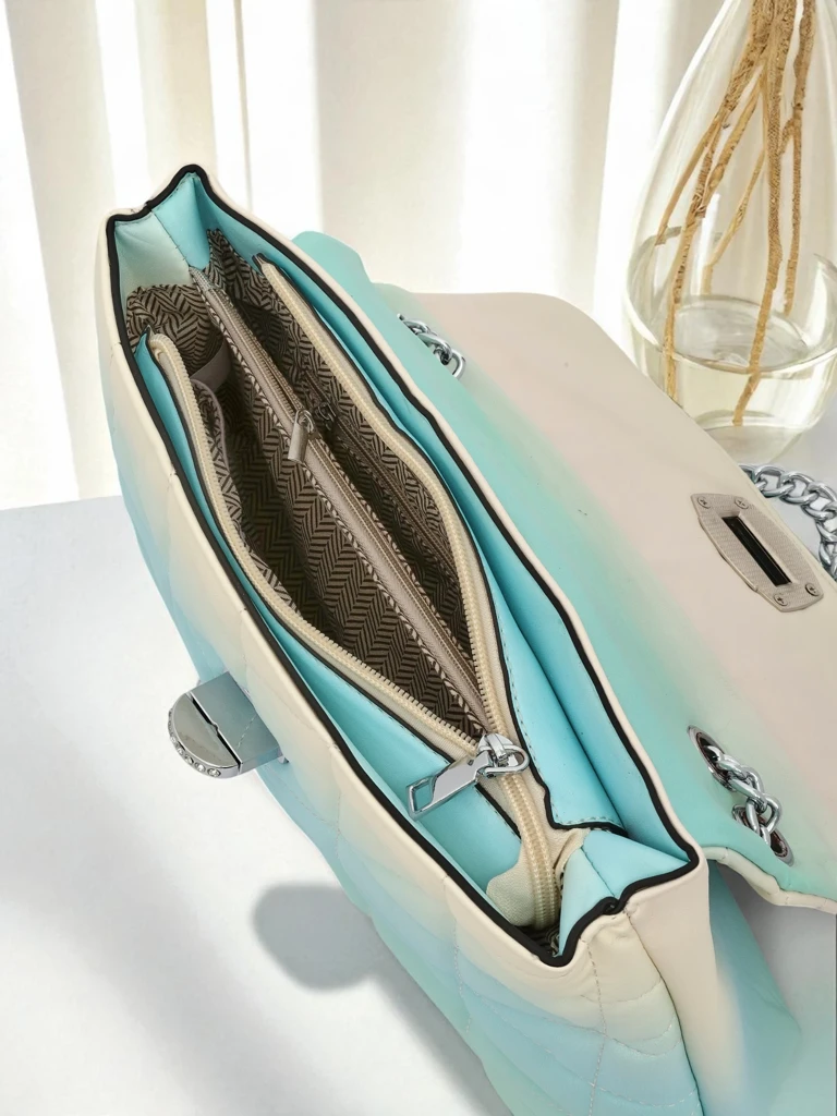 - Elegáns borítéktáska ombre hatású öko bőrből. Cipzárral és patenttal záródik. A pánt helyett fém lánc teszi stílusossá. 1 rekesz, tökéletes a legfontosabb dolgok számára egy esti programhoz vagy különleges alkalmakra.