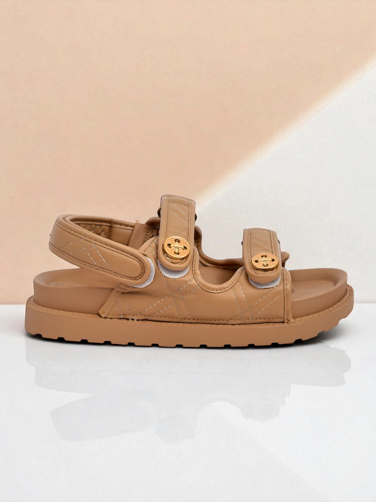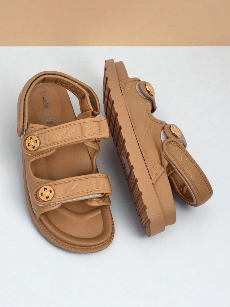 A Callista Classico szandál a modern kényelem és az időtlen, olasz stílus által ihletett elegancia kombinációja. A felsőrész kiváló minőségű, puha műbőrből készült, amely garantálja a hosszan tartó viselési kényelmet és az intenzív használatnak való ellenállást. A szandálokban használt műbőr megfelel az európai biztonsági szabványoknak, és könnyen tisztán tartható. A vastag, párnázott talp könnyű EVA habból készült, tökéletesen elnyeli az ütéseket és puhaságot biztosít a lépésnek, még egész napos járás közben is.A kétszintű tépőzáras rögzítés lehetővé teszi a cipő egyéni beállítását a láb formájához, stabilizálva azt és védve a kidörzsölődéstől. Az arany színű, virág alakú díszgombok finom eleganciát kölcsönöznek az egésznek.A szandálok tökéletesen illeszkednek a különféle stílusokhoz:1. Városi stílus: kombináld őket széles vászonnadrággal és egy klasszikus fehér pólóval – rendkívül divatos, lezser megjelenést kapsz.2. Elegáns minimalizmus: párosítsd őket egy pliszírozott midi szoknyával és egy egyszerű oversize inggel.3. Nyári lazaság: viseld a szandálokat egy légies ruhával vagy rövid rövidnadrággal és egy pántos felsővel – nagyszerű sétához vagy nyaraláshoz.A szandálok ideális állapotának megőrzése érdekében ajánlott nedves ruhával áttörölni és közvetlen hőforrástól távol szárítani. Kerüld a vízbe merítést és a hosszú ideig tartó UV-sugárzást, mert ez befolyásolhatja az anyag színét.Jelenleg az athleisure trend és a mindennapi kényelem egyértelműen dominál a cipődivatban – a vastagabb talpú és sportos tépőzáras szandálok abszolút nélkülözhetetlenek. A bézs színű Callista Classico modell szinte mindenhez passzol, stílusos és univerzális kiegészítést nyújtva a ruhatáradhoz a tavaszi/nyári szezonban.