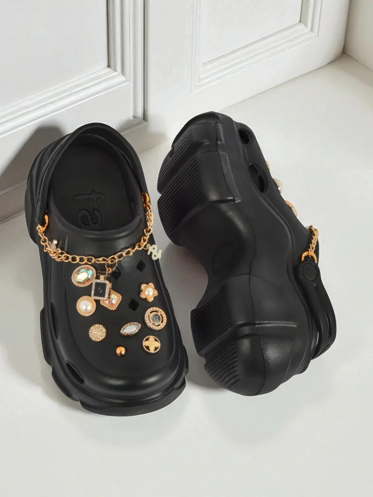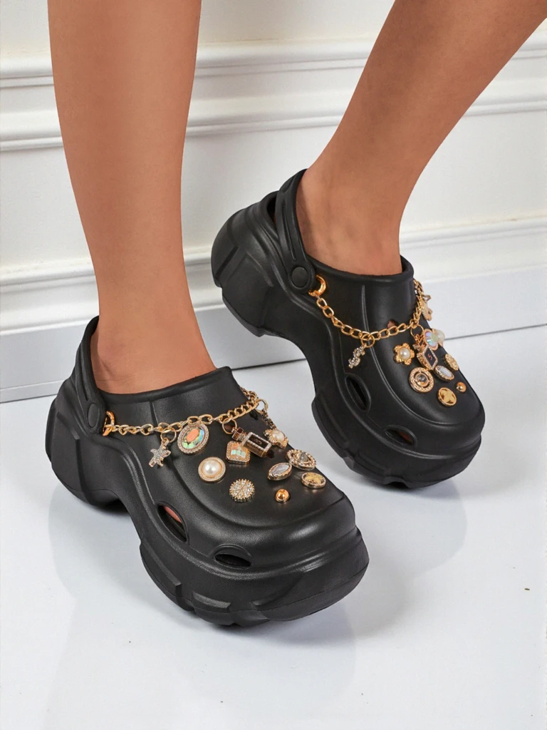 Aurelia Nero – stílusos papucs díszekkel és lánccal, tartós
