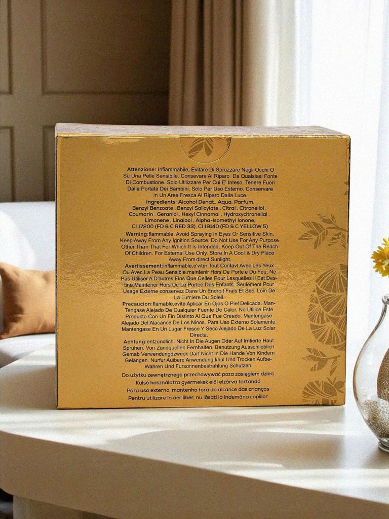 - Egy kifinomult virágos-orientális illat, amely az egzotikus fűszerek érzéki mélységét ötvözi a virágos akkordok finomságával. Elegáns és csábító, hangsúlyozza a karaktert és az osztályt—tökéletes különleges alkalmakra és esti programokra.