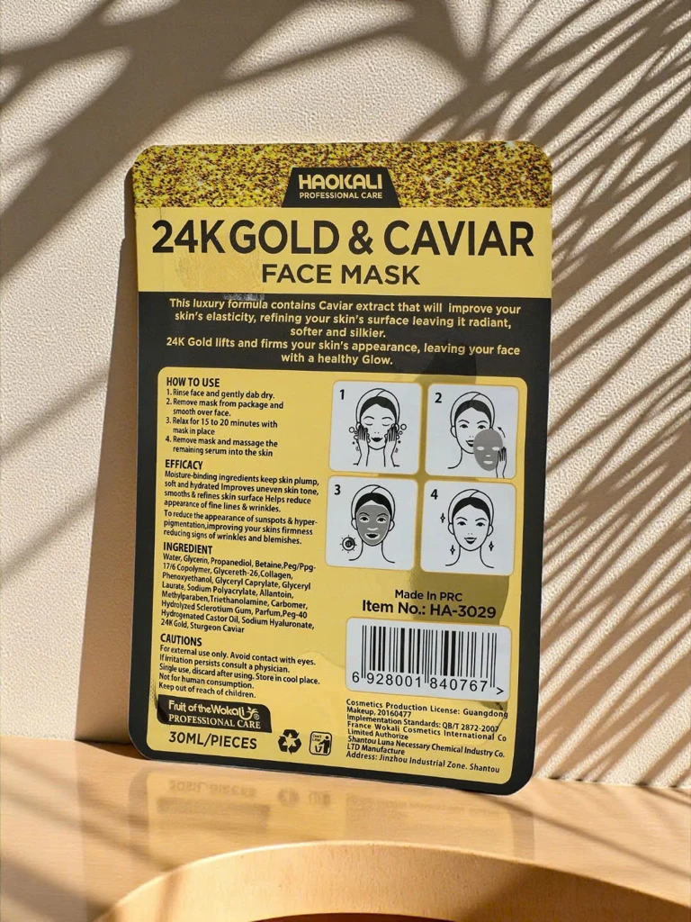 24K arannyal és kaviárral átitatott fátyolmaszk – intenzív táplálás, feszesítés és ragyogás a bőrnek. Simít, hidratál, javítja a rugalmasságot és regenerál. Véd a bőröregedés ellen és enyhíti az irritációt. Ideális az igényes bőr ápolására.