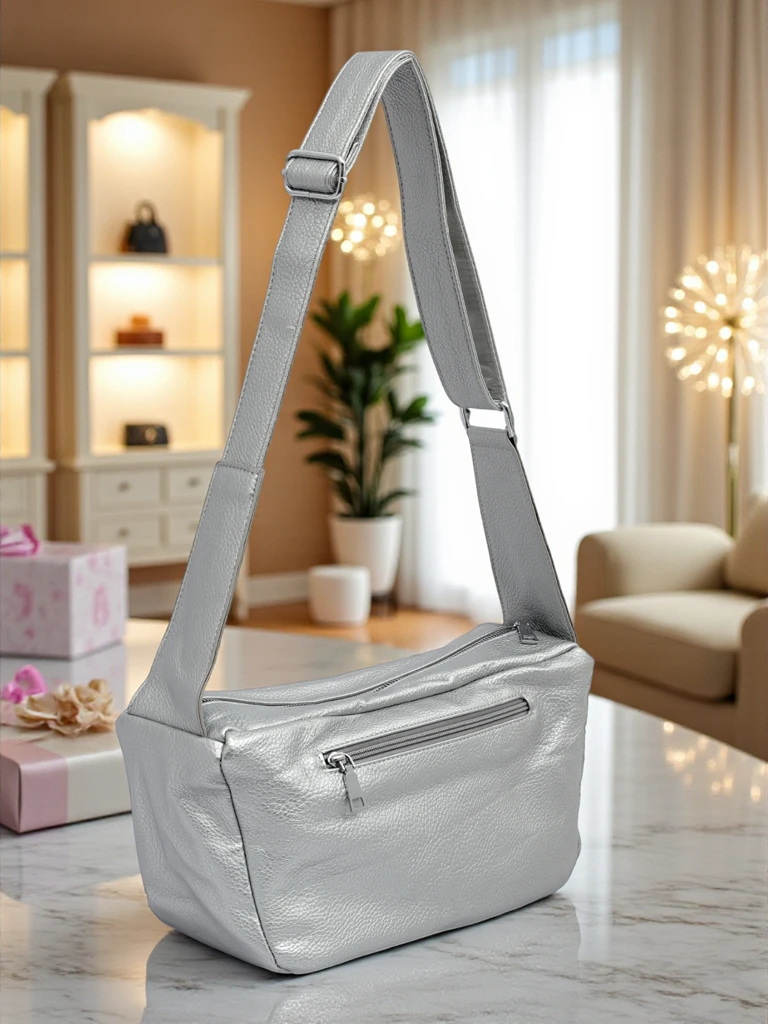 • Stílusos táska öko bőrből, 1 rekesszel és 3 zsebbel. Az állítható pánt kényelmet biztosít, a klasszikus szabás pedig minden stílushoz illik – tökéletes mindennapi használatra és különleges alkalmakra.