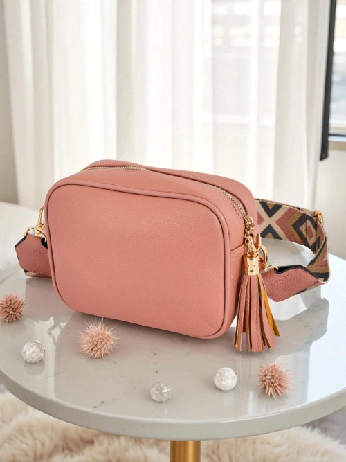 • Stílusos, kis méretű öko bőr kézitáska színes pánttal és bájos rojtokkal. 1 rekesz, 2 zseb, állítható és levehető pánt. Ideális mindennapi használatra és kirándulásokra – kompakt, mégis elfér benne minden fontos dolog.