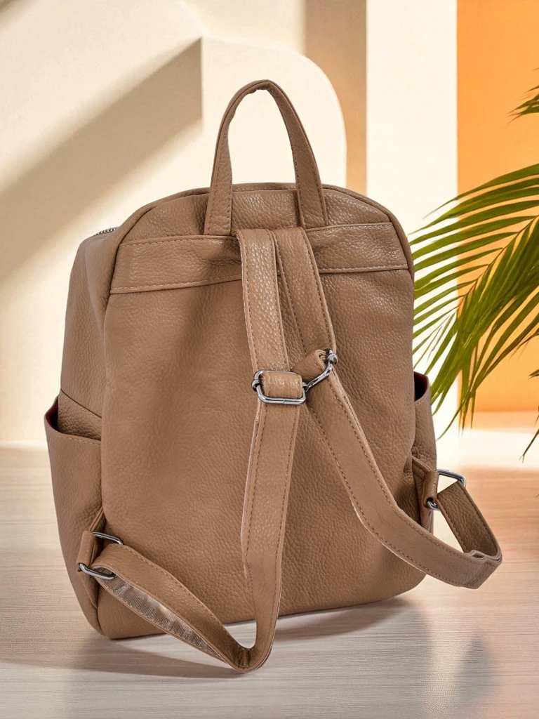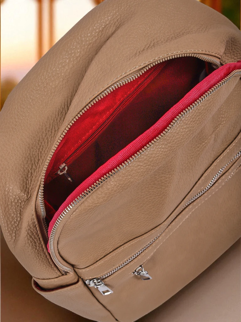 Aureliana női hátizsák Królewska Moda világosbarna öko bőr cipzárral