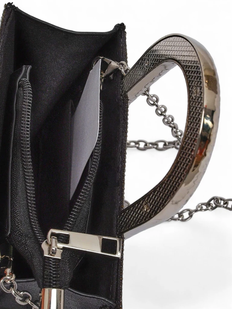 - Elegáns borítéktáska csillogó cirkóniákkal, 1 rekesszel, cipzárral zárható. Stílusos fülek és díszes lánc teszik még elegánsabbá. Tökéletes különleges alkalmakra – ragyogj stílusosan!