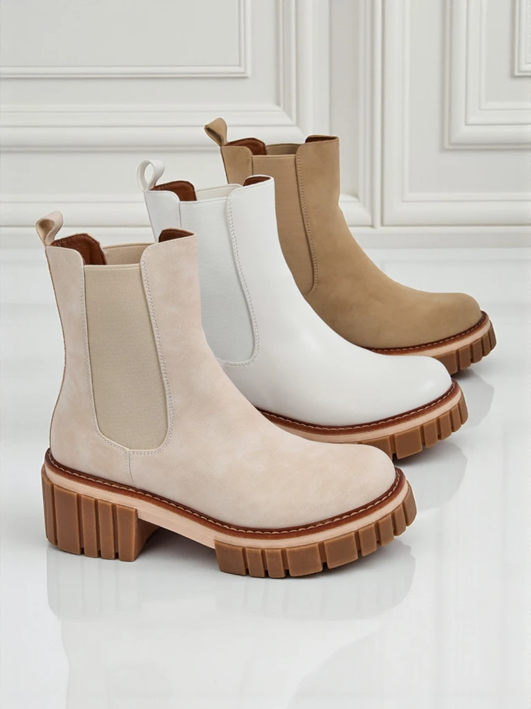 A bézs Callista bokacsizma a klasszikus és a modern kivételes kombinációja nőies kiadásban. Kiváló minőségű ökológiai velúrbőrből készült, tartósságot és kellemes tapintású anyagot kínál, amely tökéletesen utánozza a természetes velúrt, ugyanakkor könnyen kezelhető és környezetbarát. Ennek a bőrnek a gyártási folyamata a mikroszálak gondos feldolgozásából áll, ami mély, matt felületet eredményez, és biztosítja a tartósságot még mindennapi használat során is. Ráadásul az anyag OEKO-TEX minőségi tanúsítvánnyal rendelkezik, amely megerősíti, hogy nem tartalmaz káros anyagokat. A Callista bokacsizma divatos, világos bézs színben kapható. Az oszlop modern karaktert kölcsönöz neki, miközben garantálja a stabilitást és a kényelmet járás közben, a kerek orr pedig kényelmet biztosít még egész nap is. A puha bélés és a rugalmas oldalsó betétek megkönnyítik a cipő felvételét, és tökéletesen illeszkednek a láb formájához. A legfontosabb előnyök: - Kivételes kényelem a stabil oszlopos saroknak köszönhetően, - Univerzális design – alkalmi és elegánsabb stílusokhoz is passzol, - Ellenáll a szennyeződéseknek és könnyen tisztítható (elég egy puha kefe vagy nedves ruha), - Környezetbarát anyag, amely védi a környezetet. Stílusötletek: 1. A mindennapi városi megjelenéshez viselje testhezálló farmerrel, fehér inggel és laza kabáttal, 2. Randevúhoz vagy esti kiruccanáshoz kombinálja a bokacsizmát egy A-vonalú midi ruhával és egy hosszú kardigánnal, 3. Fedezze fel az eleganciát, ha semleges színű öltönnyel párosítja – ez egy modern csavar az irodai ruhákhoz! Ápolás és tárolás: A bokacsizmát velúrra szánt puha kefével vagy mosószermentes nedves ruhával tisztítjuk. Óvja a nedvességtől és az intenzív napfénytől – a legjobb, ha szellős helyen, eredeti betéten vagy dobozban tárolja. Jelenleg a masszív talpak és a kifejező oszlopok az egyik legfontosabb őszi trend, a klasszikus bézs szín pedig ezeket a bokacsizmákat univerzális ajánlattá teszi minden nő számára, aki értékeli a kényelmet, a stílust és az aktuális divattrendeket.