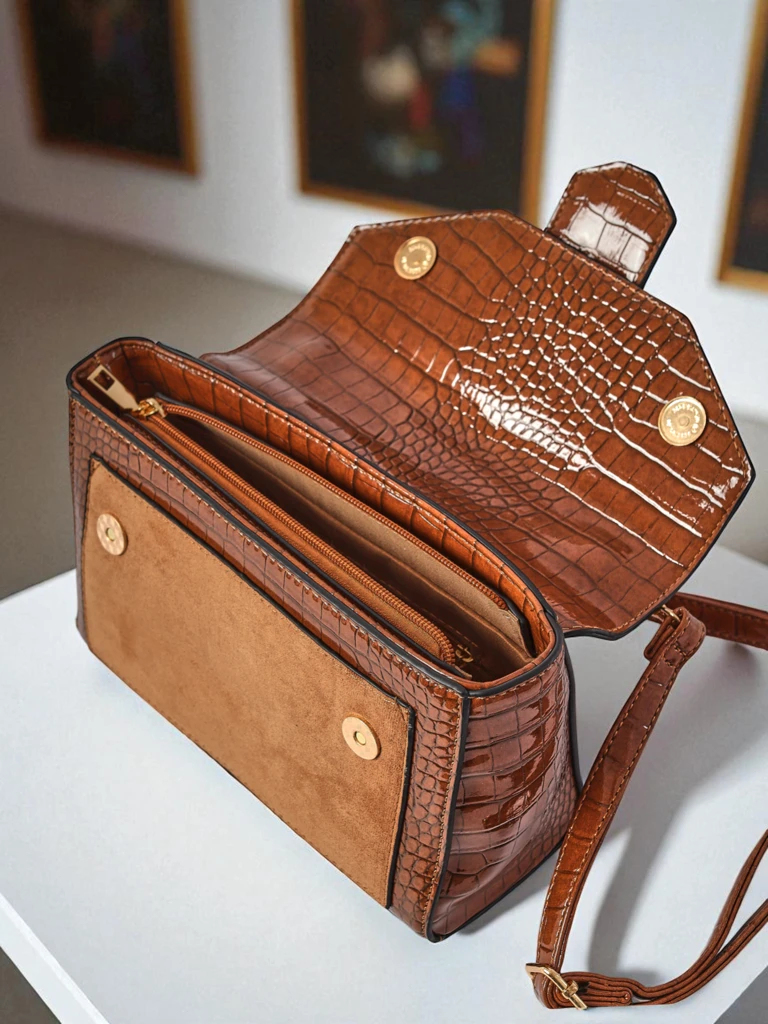 A Callista táska a kifinomult stílus és a környezettudatos megközelítés kombinációja. Kiváló minőségű ökológiai bőrből és velúr öko-bőrből készült, amelyek nemcsak a természetes textúrát tükrözik, hanem környezetbarátak is. Ezen anyagok gyártási folyamata a vegyi anyagok használatának és a vízfogyasztásnak a csökkentésén alapul, ami megerősíti azok környezetbarát jellegét. A táska velúr eleje lenyűgöző a puha tapintásával, míg a krokodilbőr textúrájú műbőr felületek luxust és karaktert kölcsönöznek az egész formának. Az arany szerelvények és a masszív cipzár a mágnessel kombinálva gondoskodnak a tárolt dolgok biztonságáról. A táska belseje átgondoltan van elrendezve - a számos zseb és a tér felosztása lehetővé teszi a legszükségesebb kiegészítők, például telefon, pénztárca vagy kulcsok kényelmes elrendezését. A Callista modell olyan nőknek készült, akik értékelik a kényelmet, az esztétikát és a modern megoldásokat. A Callista táska legfontosabb előnyei: - A könnyű szerkezet és a kompakt méret (24x16x10 cm) tökéletesen alkalmassá teszi a mindennapi kirándulásokhoz és találkozókhoz. - Az ökológiai anyagok garantálják a tartósságot, a könnyű tisztítást és a sérülésekkel szembeni ellenállást. - Az univerzális, sötétbarna szín illeszkedik az aktuális divattrendekhez és sok stílushoz. Stílusjavaslatok: 1. Casual szett: testhezálló farmer, fehér póló, karamell színű kabát és Callista táska - tökéletes megjelenés vásárláshoz és barátokkal való találkozáshoz. 2. Business chic: ceruzaszoknya, selyem blúz és tűsarkú - az elegáns táska kiegészíti az irodai megjelenést egy fontos üzleti találkozóhoz. 3. Bohém stílus: légies ruha, cowboy csizma és hosszú kardigán - a Callista könnyedséget és modernitást kölcsönöz minden nyári stílusnak. Hogyan kell gondozni a táskát: - Tisztítsa meg nedves ruhával, enyhe, műbőrhöz és velúrhoz való mosószerrel. - Szellőző helyen tárolja, lehetőleg a formát védő töltelékkel a belsejében. - Kerülje a hosszan tartó napfénynek való kitettséget és a vízzel való érintkezést. A Callista táska illeszkedik a szezon legújabb trendjeibe - a klasszikus barna és a velúr és krokodilbőr utánzatú bőr kombinációja a világ kifutóin is észrevehető. Ez egy kötelező darab minden modern nő számára, aki értékeli a stílust és a funkcionalitást.