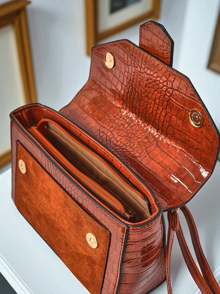 A Callista táska a kifinomult stílus és a környezettudatos megközelítés kombinációja. Kiváló minőségű ökológiai bőrből és velúr öko-bőrből készült, amelyek nemcsak a természetes textúrát tükrözik, hanem környezetbarátak is. Ezen anyagok gyártási folyamata a vegyi anyagok használatának és a vízfogyasztásnak a csökkentésén alapul, ami megerősíti azok környezetbarát jellegét. A táska velúr eleje lenyűgöző a puha tapintásával, míg a krokodilbőr textúrájú öko-bőr felületek luxust és karaktert kölcsönöznek az egész formának. Az arany színű fém alkatrészek és a masszív cipzár a mágnessel kombinálva gondoskodnak a tárolt dolgok biztonságáról. A táska belseje átgondoltan van kialakítva – a számos zseb és a tér elosztása lehetővé teszi a legszükségesebb kiegészítők, például telefon, pénztárca vagy kulcsok kényelmes elrendezését. A Callista modell azoknak a nőknek készült, akik értékelik a kényelmet, az esztétikát és a modern megoldásokat. A Callista táska legfontosabb előnyei: - A könnyű szerkezet és a kompakt méret (24x16x10 cm) tökéletesen alkalmassá teszi a mindennapi kirándulásokhoz és találkozókhoz. - Az ökológiai anyagok garantálják a tartósságot, a könnyű tisztítást és a sérülésekkel szembeni ellenállást. - Az univerzális, sötétbarna szín illeszkedik az aktuális divattrendekhez és sok stílushoz. Stílusjavaslatok: 1. Casual szett: testhezálló farmer, fehér póló, karamell színű kabát és Callista táska – ideális megjelenés vásárláshoz és barátnőkkel való találkozáshoz. 2. Business chic: ceruzaszoknya, selyemblúz és tűsarkú – az elegáns táska kiegészíti az irodai megjelenést egy fontos üzleti találkozóhoz. 3. Bohém stílus: légies ruha, cowboy csizma és hosszú kardigán – a Callista könnyedséget és modernitást kölcsönöz minden nyári stílusnak. Hogyan kell gondozni a táskát: - Tisztítsa nedves ruhával, öko-bőrhöz és velúrhoz való enyhe tisztítószerrel. - Szellőző helyen tárolja, lehetőleg a formát védő töltelékkel a belsejében. - Kerülje a hosszan tartó napfénynek való kitettséget és a vízzel való érintkezést. A Callista táska illeszkedik a szezon legújabb trendjeibe – a klasszikus barna és a velúr és krokodilbőr utánzatú bőr kombinációja a világ kifutóin is megfigyelhető. Ez egy kötelező darab minden modern nő számára, aki értékeli a stílust és a funkcionalitást.