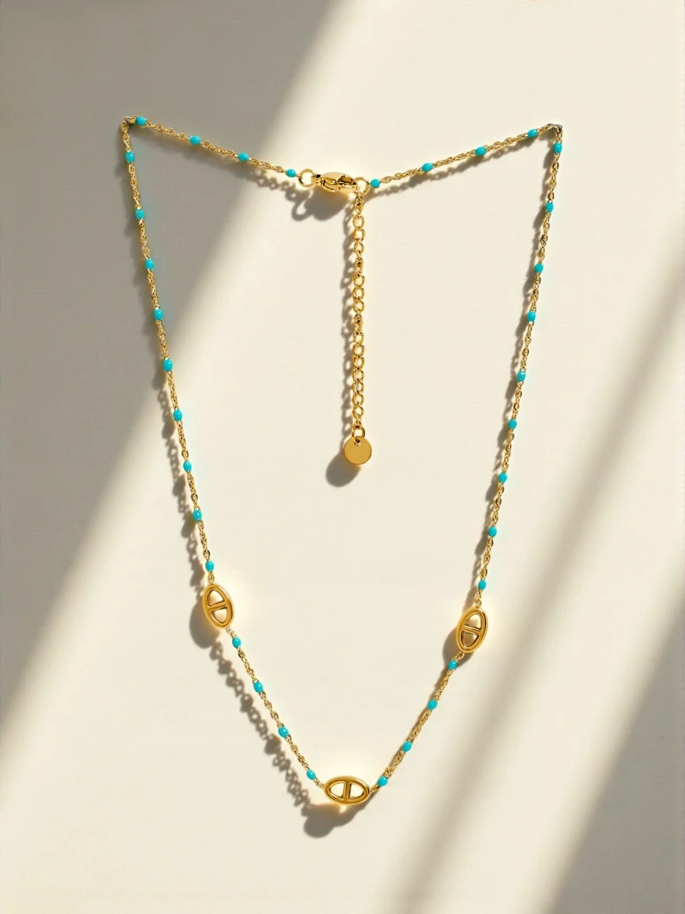 • Aurelia Kyanos arany nyaklánc kék gyöngyökkel – időtálló, stílusos ékszer.