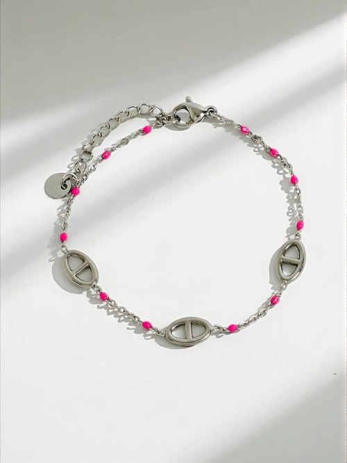 Callista Elegantia karkötő láncszemekkel és rózsaszín gyöngyökkel, sebészeti acél