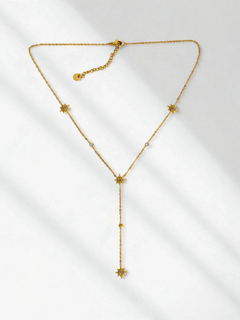 Finom, aranyozott, rozsdamentes acél lariat nyaklánc csillag motívummal – divatos ékszer minden alkalomra.