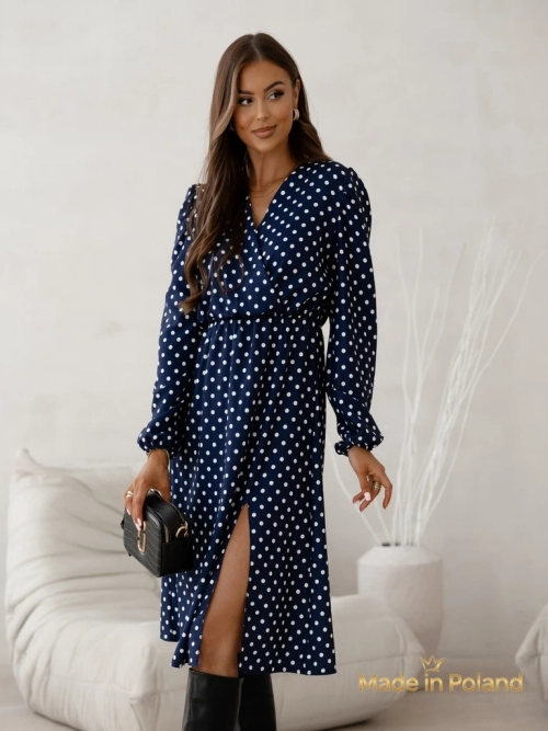 • Mintás női midi ruha kellemes anyagból, hosszú ujjakkal és átlapolt dekoltázzsal. A modell gumírozott derékrésszel rendelkezik. Kihagyhatatlan darab a ruhatáradból! FIGYELEM: A mérés pontossága (+/-) 1 cm. A méretek laposan mérve.