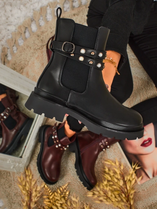Előnyök és érzések a használat során: A bokacsizmák stabil tartást nyújtanak a masszív talpnak és az alacsony, kényelmes 3 cm-es saroknak köszönhetően. A rugalmas oldalsó panelek növelik a kényelmet és a vádlira való illeszkedést, a puha bélés pedig javítja a viselési komfortot még hosszabb séták során is. A gyöngy díszítések nőies akcentust adnak, ötvözve az eleganciát a masszív talp katonai jellegével.