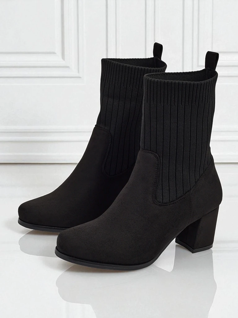 Női öko velúr bokacsizma vastag sarokkal, zokniszerű betéttel LumenThorn