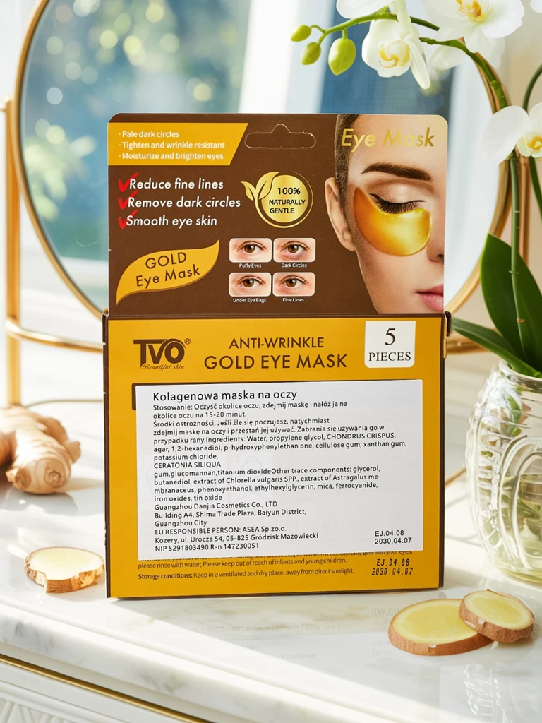 Odkryj sekret młodzieńczego spojrzenia z maską pod oczy TVO Aurum Lux, innowacyjnym produktem, który łączy starożytne mądrości z nowoczesną nauką o pielęgnacji. Ta wyjątkowa złota maska hydrożelowa została stworzona, aby intensywnie odżywiać i regenerować delikatną skórę wokół oczu, skutecznie walcząc z oznakami zmęczenia i starzenia.Materiały i Technologia Produkcji:Maska TVO Aurum Lux wykorzystuje zaawansowaną technologię hydrożelową, która zapewnia optymalne przyleganie do skóry i maksymalne wchłanianie składników aktywnych. Płatki hydrożelowe, wykonane z biodegradowalnego materiału, są nasycone bogatą esencją, która stopniowo uwalnia cenne substancje. Proces produkcji odbywa się w kontrolowanych warunkach, gwarantując czystość i skuteczność każdego płatka. Produkt jest w 100% delikatny dla skóry i wolny od zbędnych dodatków, co potwierdza jego naturalny i bezpieczny skład.Składniki Aktywne:Sercem formuły TVO Aurum Lux są starannie wyselekcjonowane składniki:Złoto koloidalne: Znane ze swoich właściwości rozświetlających, przeciwzapalnych i stymulujących produkcję kolagenu. Pomaga poprawić elastyczność skóry i nadać jej promienny wygląd.Ekstrakt z żeń-szenia: Potężny adaptogen, który rewitalizuje skórę, poprawia krążenie i działa antyoksydacyjnie. Skutecznie redukuje opuchliznę i cienie pod oczami, dodając skórze energii.Kolagen: Kluczowy dla jędrności i elastyczności skóry. Wzmacnia jej strukturę, wygładza drobne zmarszczki i zapobiega powstawaniu nowych.Kwas hialuronowy: Intensywnie nawilża skórę, wiążąc wodę w naskórku, co sprawia, że staje się ona gładka, miękka i pełna blasku.Gliceryna: Wspomaga nawilżenie i chroni barierę skórną.Wyjątkowe Korzyści i Wrażenia z Użytkowania:Po zastosowaniu maski TVO Aurum Lux natychmiast poczujesz przyjemne uczucie chłodzenia i ukojenia. Skóra wokół oczu staje się wyraźnie nawilżona, ujędrniona i rozświetlona. Regularne stosowanie pomaga zredukować widoczność cieni, worków pod oczami oraz drobnych linii i zmarszczek. Twoje spojrzenie odzyska świeżość, a skóra będzie wyglądać na wypoczętą i młodszą. To idealny sposób na szybką regenerację i poprawę kondycji delikatnej skóry.Wskazówki Stylizacyjne:1. Poranne odświeżenie: Nałóż maskę na 15-20 minut przed nałożeniem makijażu, aby zniwelować poranną opuchliznę i przygotować skórę pod korektor. Idealne przed ważnym spotkaniem lub wydarzeniem.2. Wieczorny rytuał SPA: Użyj maski jako elementu relaksującego wieczornego rytuału pielęgnacyjnego. Połącz ją z ulubioną muzyką i odprężającą kąpielą, aby maksymalnie zrelaksować się po długim dniu.3. Pielęgnacja w podróży: Niezastąpiona podczas długich lotów lub podróży samochodem. Pomoże zwalczyć zmęczenie i suchość skóry spowodowaną klimatyzacją, przywracając świeży wygląd.Pielęgnacja i Przechowywanie:Aby zachować maksymalną skuteczność produktu, przechowuj maskę w chłodnym i suchym miejscu, z dala od bezpośredniego światła słonecznego. Po otwarciu opakowania, płatki należy zużyć natychmiast, aby zapobiec wysychaniu i utracie właściwości. Nie stosować na uszkodzoną lub podrażnioną skórę. W przypadku wystąpienia podrażnień, zaprzestać używania.Aktualne Trendy w Pielęgnacji:Maska TVO Aurum Lux doskonale wpisuje się w obecne trendy pielęgnacyjne, takie jak "self-care" i "skinimalism", promujące świadomą i skuteczną pielęgnację. Złoto i żeń-szeń to składniki cenione w luksusowych rytuałach domowego SPA, a ich obecność w masce podkreśla dążenie do naturalnych, ale jednocześnie zaawansowanych rozwiązań anti-aging. Produkt odpowiada na rosnące zapotrzebowanie na szybkie i efektywne rozwiązania dla zmęczonej skóry wokół oczu, oferując profesjonalną pielęgnację w zaciszu własnego domu.
