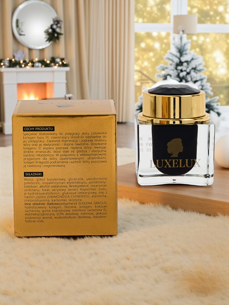 A Luxelux luxusos, III. típusú kollagént tartalmazó öregedésgátló krém intenzíven regenerálja és feszesíti a bőrt. Az innovatív technológiák és az ázsiai összetevők kombinációjának köszönhetően simaságot, rugalmasságot és fiatalosabb megjelenést biztosít.