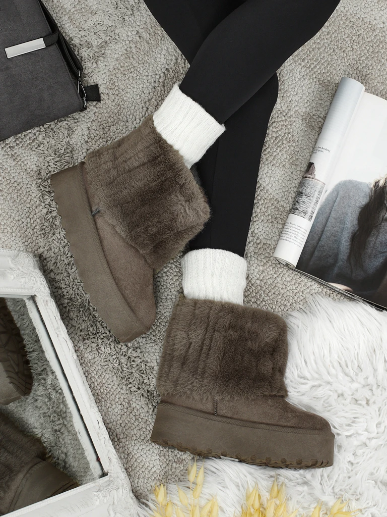 • Remek női téli hócsizmák vastag platformtalppal. A felsőrész ökológiai velúrbőrből készült, a belseje szőrmével van bélelve. Ideális alap a télre!