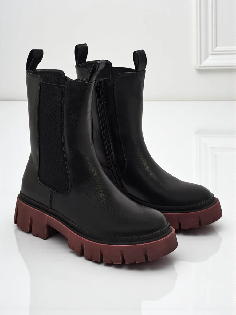 Magas szárú női öko bőr bokacsizma színes talppal Dorvella