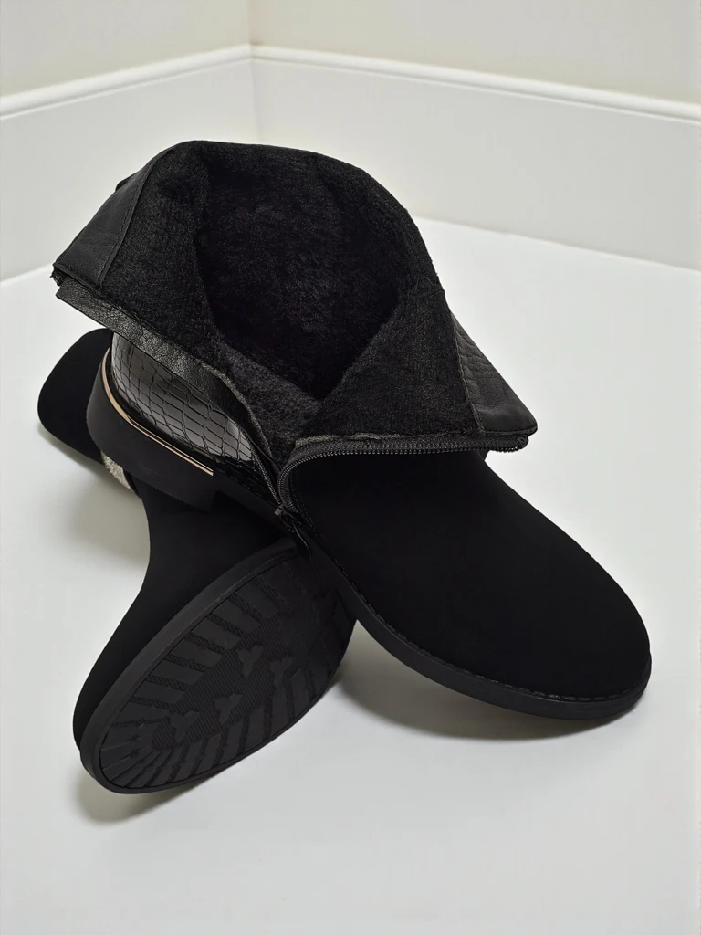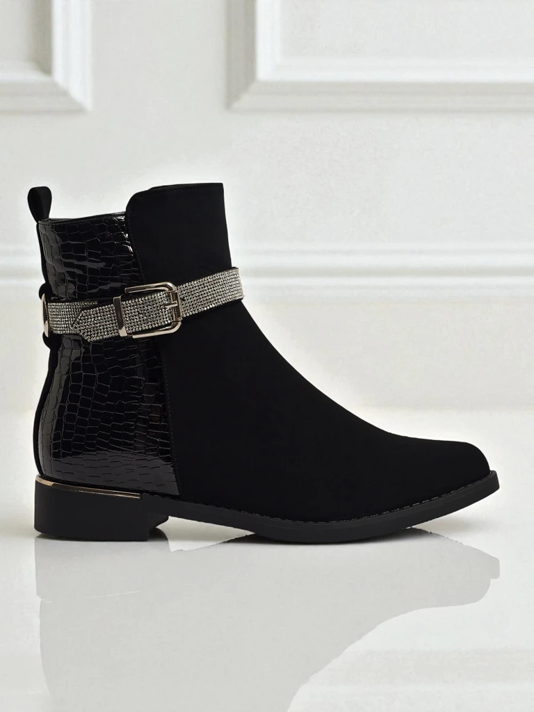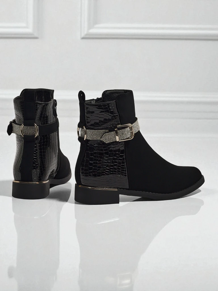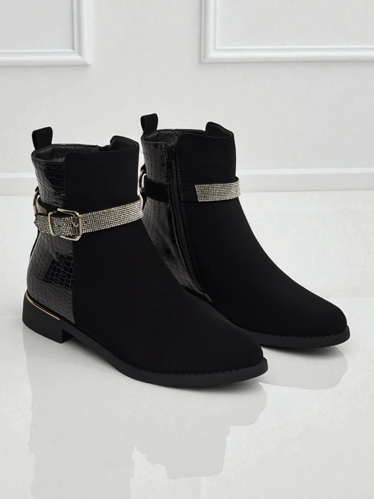 - Női cipzáras bokacsizma. A modell matt és lakkozott ökológiai bőr kombinációjából készült, lapos talpon. Műszőrme béléssel rendelkezik. Cirkóniákkal díszítve. Kényelmes és stílusos, ideális őszre!