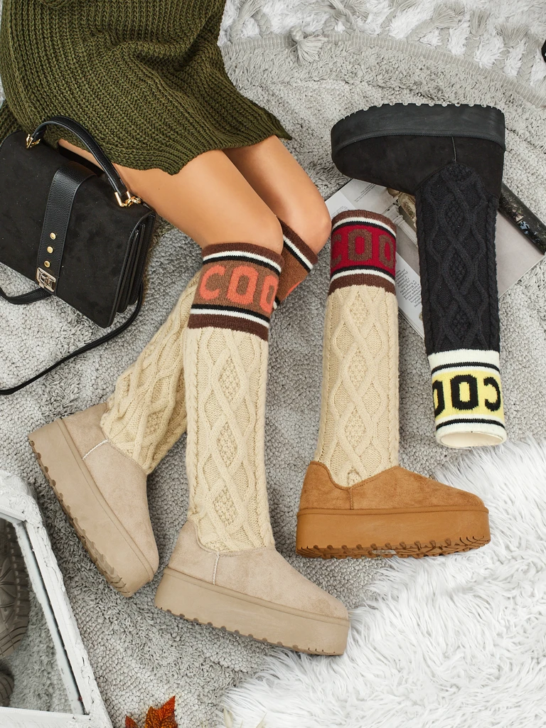 Kiváló női téli hócsizmák vastag platformtalppal. A felsőrész ökológiai velúrbőrből készült, a belseje műszőrmével bélelt. Ezenkívül magas, zokniszerű textil felsőrésszel rendelkeznek. Tökéletes alap a télre!