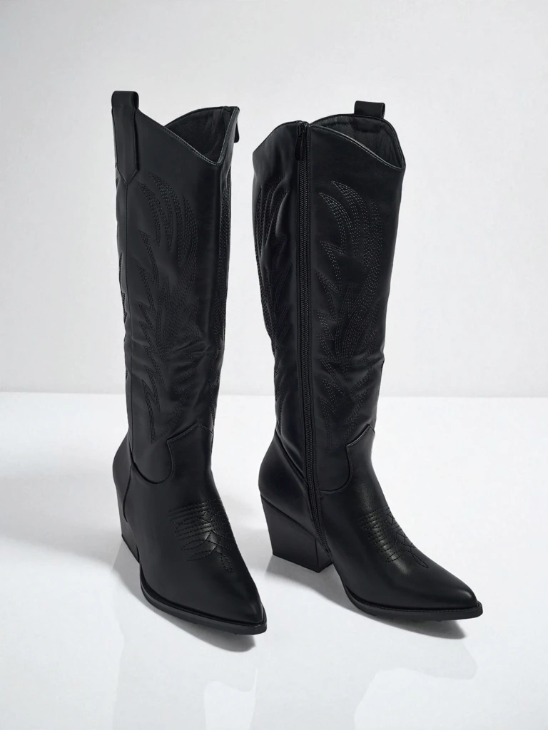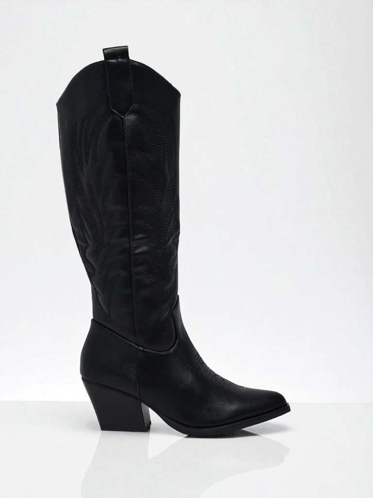Sarkantyús csizma, öko-bőr velúrból készült, sarokkal. A cipő cipzárral záródik és szövet béléssel rendelkezik. Sok női stílushoz illik!