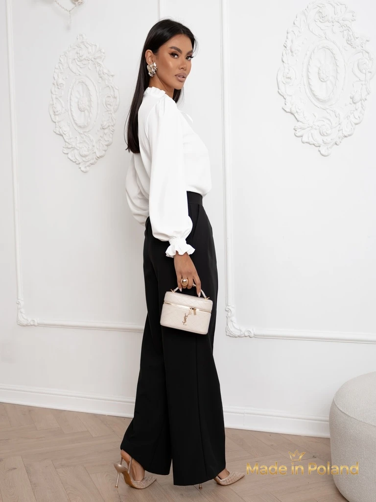 1. Kombinálja az Aurelia blúzt klasszikus fekete szövetnadrággal egy irodai kiránduláshoz.