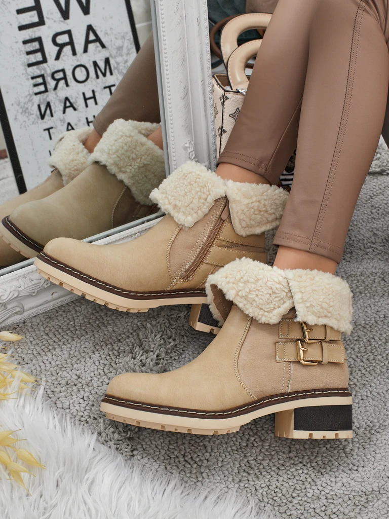 Botki damskie eko skórzane z kożuszkiem Kavira
