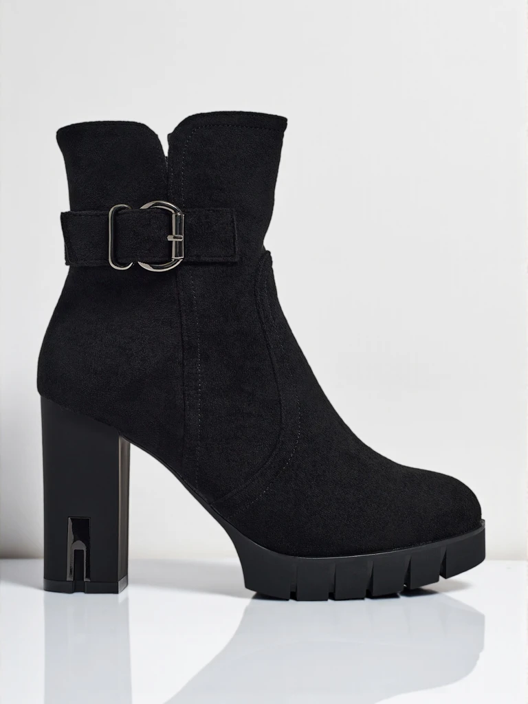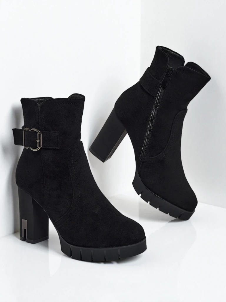 • Kényelmes bokacsizmák vastag sarokkal, öko velúrbőrből készültek. Cipzáras modell. A modell finoman bélelt műszőrmével, díszcsattal rendelkezik. Ideális választás őszre!