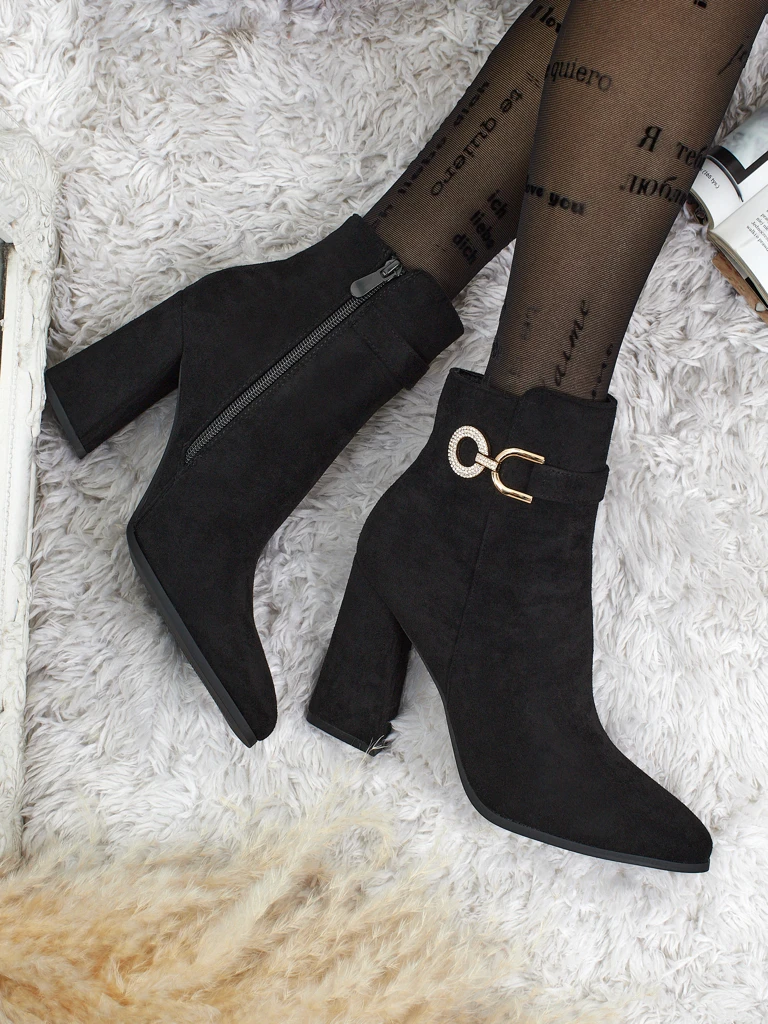 - Csodálatos vastag sarkú bokacsizmák, öko velúrbőrből készültek. Cipzáras modell. A modell finoman szőrmével bélelt, a szár oldalán cirkónia díszítéssel. Ideális választás őszre!