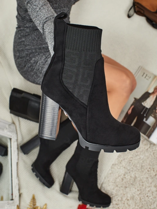 - Kényelmes bokacsizmák magas, vastag sarokkal, öko velúrbőrből és szövetbetéttel. Felbújós modell. A modell finoman bélelt műszőrmével. Ideális választás őszre!