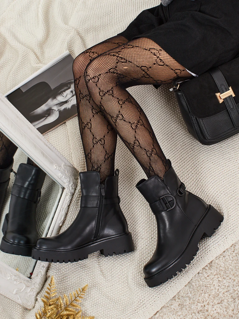 Női bokacsizma öko bőrből, cipzárral és kerek orral, ráadásul szőrme formájában szigetelve – modernitás, kényelem és stílus egyben. Csatpánttal díszítve.
