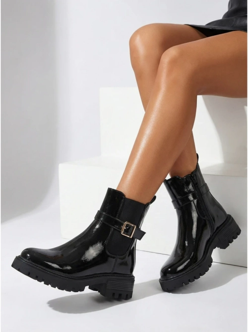 • Női cipzáras bokacsizma. A modell lakkozott ökológiai bőrből készült, lapos talpon. Műszőrme béléssel rendelkezik. Kényelmes és stílusos, tökéletes őszre!