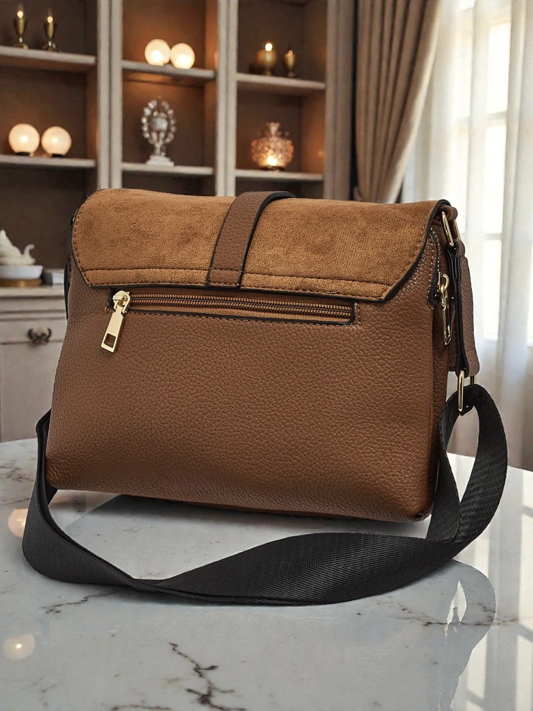 Kiváló minőségű ökológiai bőrből és velúrból készült, a táska tartósságot és a részletekre való odafigyelést biztosítja. A felhasznált anyagok nemcsak az esztétikai értékeket emelik, hanem a táskát könnyen kezelhetővé is teszik. A további arany díszítőelemek elegáns karaktert kölcsönöznek neki, amely minden alkalomra ideális.