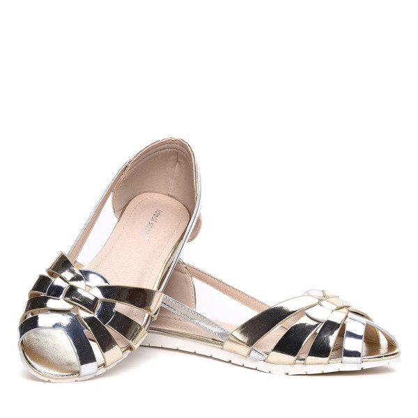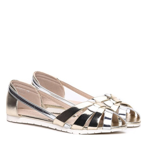 Złoto-srebrne balerinki wykonane z eko skóry- Obuwie
