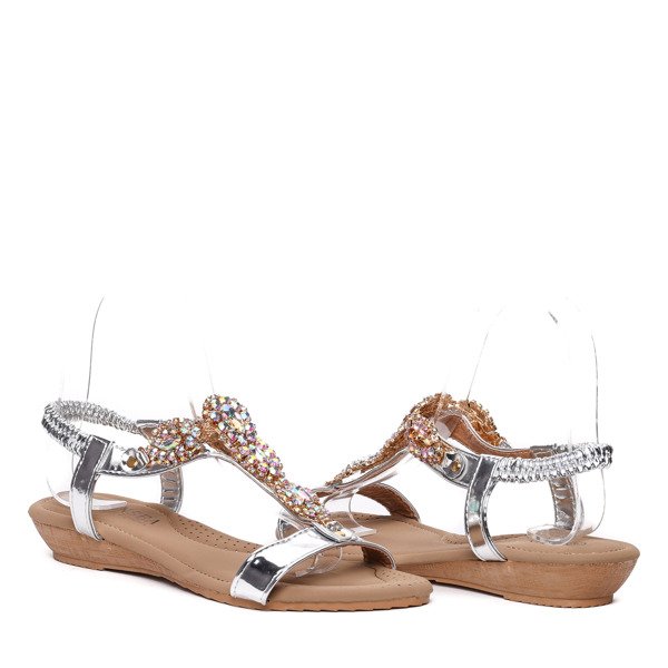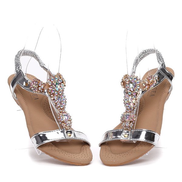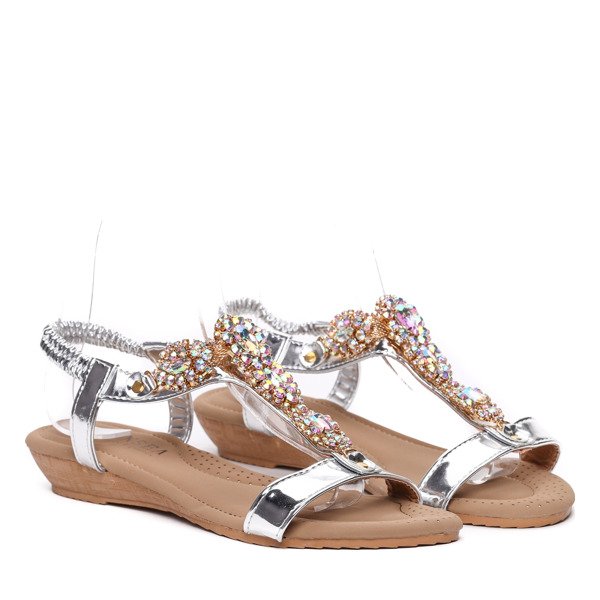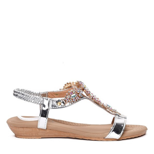 Srebrne sandały z kryształkami- Obuwie