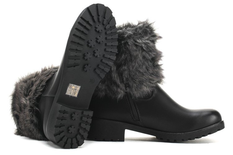 - Rewelacyjne botki z grubym futerkiem od środka zapewnią Ci ciepło w chłodniejsze dni. Buty posiadają ozdobne futerko na zakończeniu cholewki. Solidne wykonanie, bardzo wygodne i stabilne.