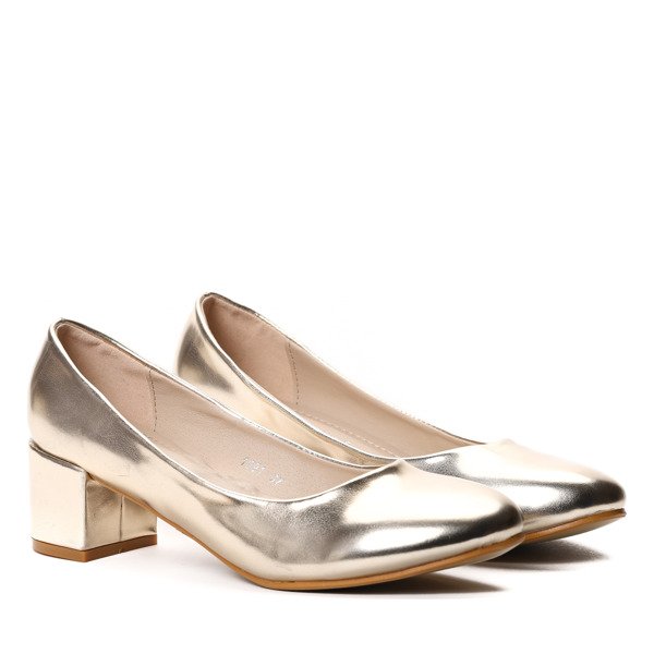 Złote czółenka na słupku - Obuwie
