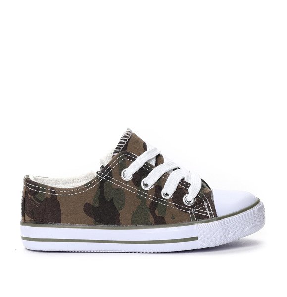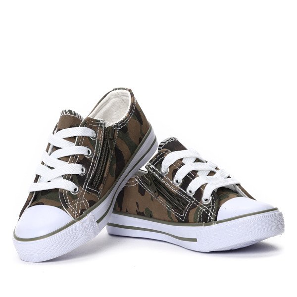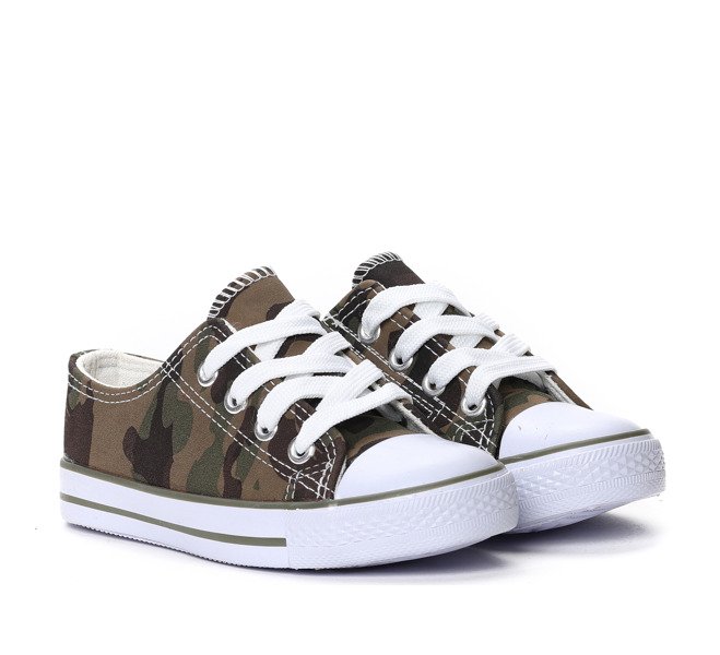 • Klasyczne trampki w moro wykonane z ekologicznej skóry imitującej sztywny zamsz. Wkładka wykonana z tkaniny. Gruba i miękka podeszwa daje w noszeniu duży komfort i wygodę. Buty są sznurowane, dodatkowo mają suwak po boku ułatwiający zakładanie.