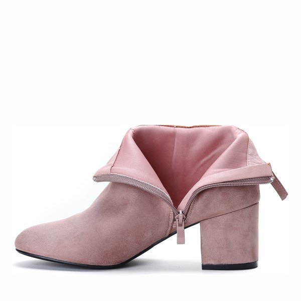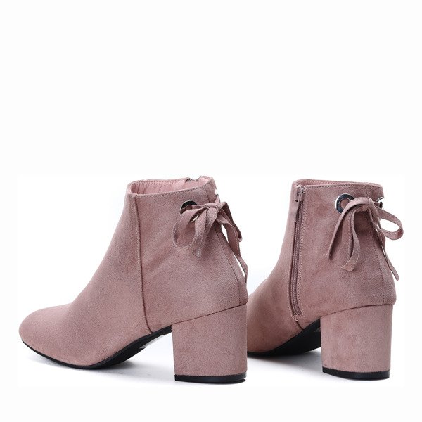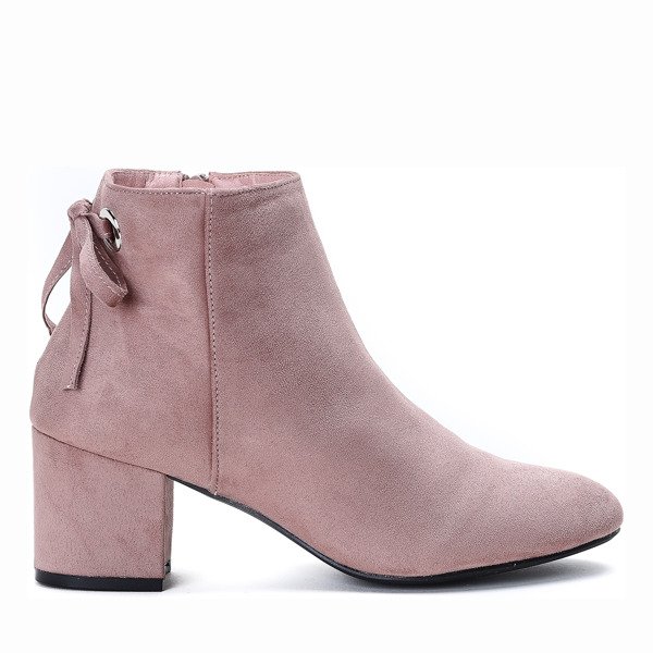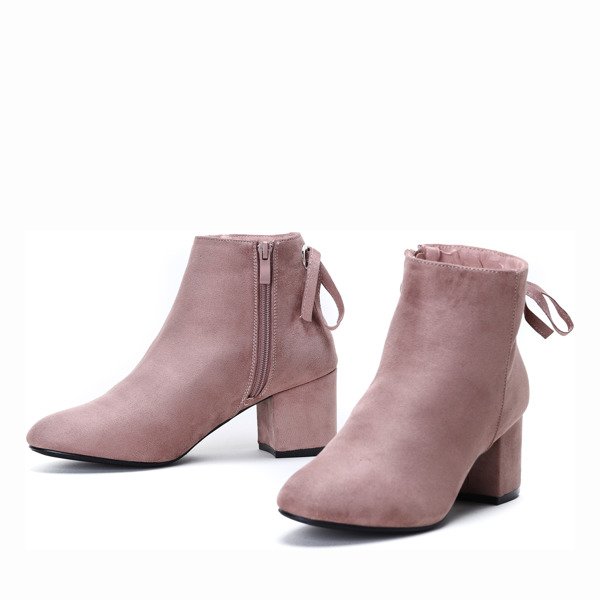 Botki z kokardką w kolorze brudnego różu na słupku Leila - Obuwie