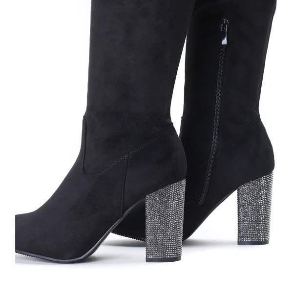 Czarne kozaki na słupku Crystalised - Obuwie