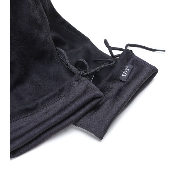- Niesamowicie długie kozaki na słupku wykonane z eko-zamszu. Obcas zdobiony cyrkoniami. W środku w dolnej części ocieplane futerkiem. W tylnej części posiadają sznureczek, którym można regulować szerokość górnej części cholewki.