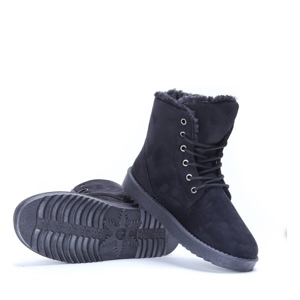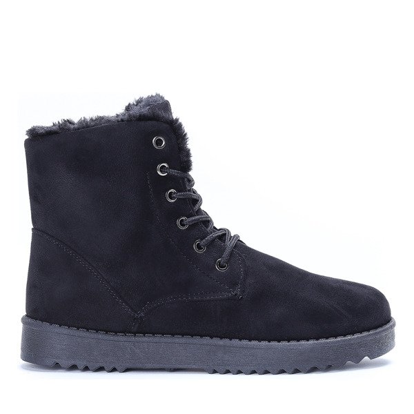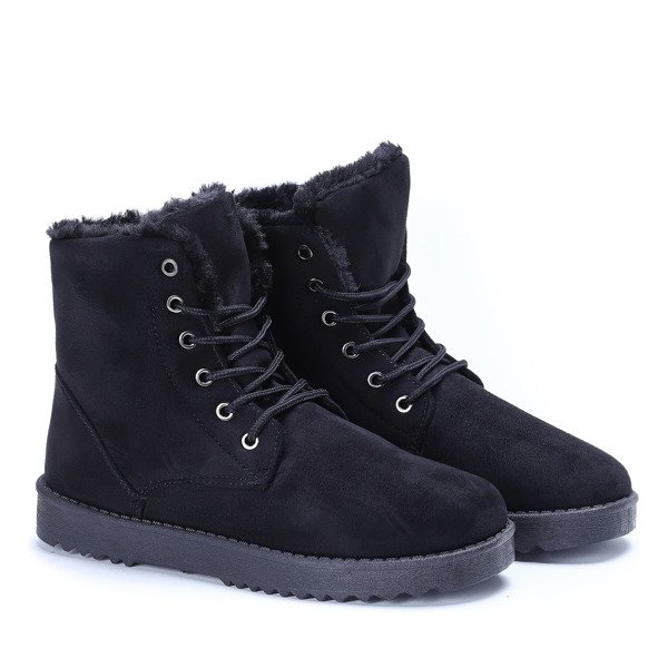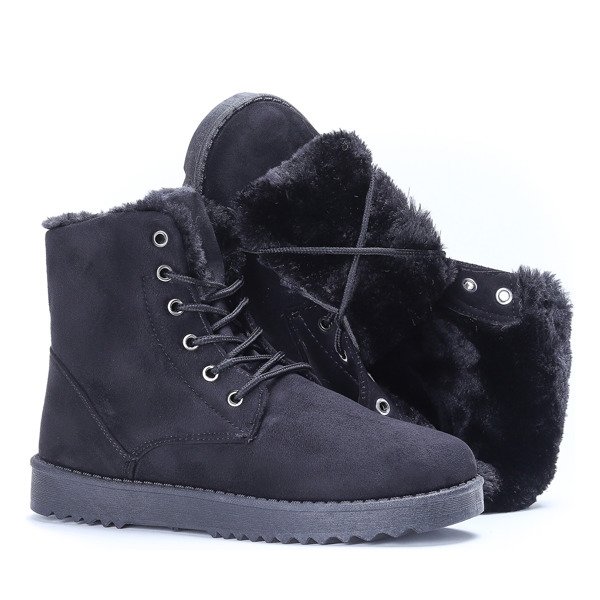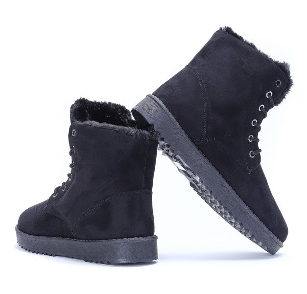 Czarne, ocieplane botki na platformie Gretta - Obuwie