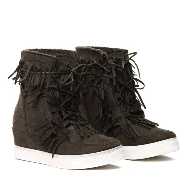 Ciemnozielone sneakersy z frędzlami na krytym koturnie Kennedy - Obuwie