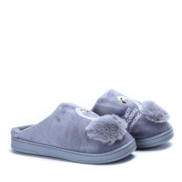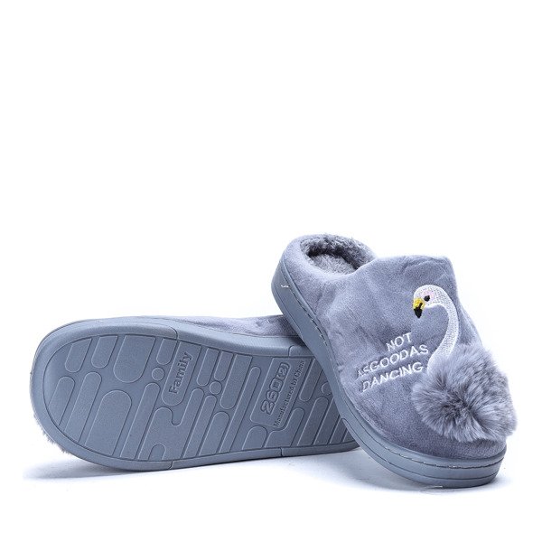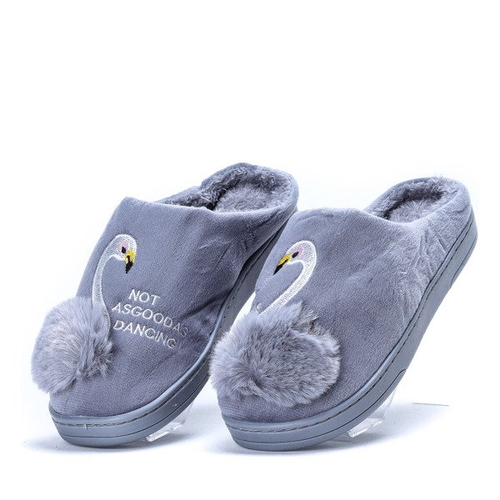 - Niezwykłe kapcie wykonane z materiału futerkowego. Przód zdobiony łabędziem oraz napisem "NOT AS GOOD AS DANCING". Model bardzo miękki i wygodny.