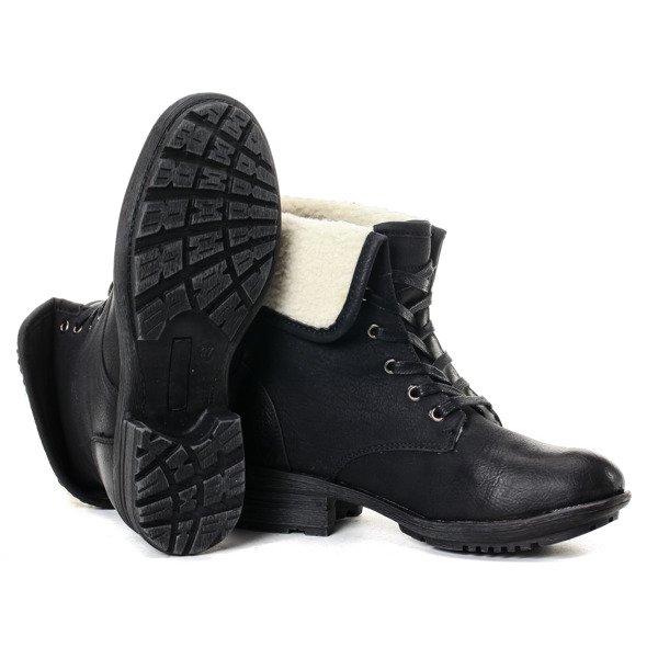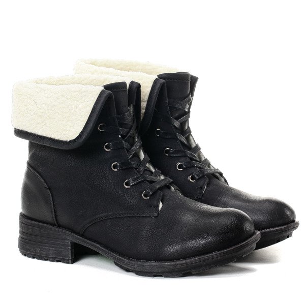Czarne workery z kożuszkiem - Obuwie