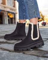 Tirave női öko bőr bokacsizma vastag sarokkal és kötött anyaggal